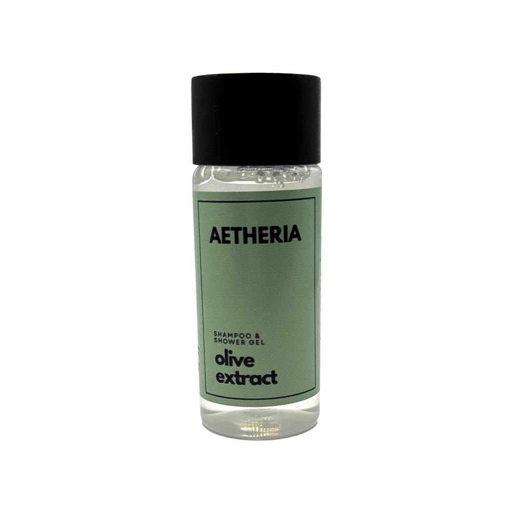 Η σειρά AETHERIA, περιλαμβάνει: Σαμπουάν - Αφρόλουτρο 2 σε 1 με Εκχύλισμα Ελιάς (Olive Extract) 35g - Πράσινη Συσκευασία: